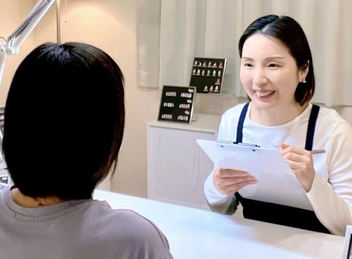 お客様のご希望や悩みなどを丁寧に伺い、爪やお肌の状態、生活スタイルに合わせた最適な施術方法をご提案いたします。