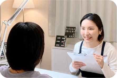 お客様のご希望や悩みなどを丁寧に伺い、爪やお肌の状態、生活スタイルに合わせた快適な施術方法をご提案いたします。